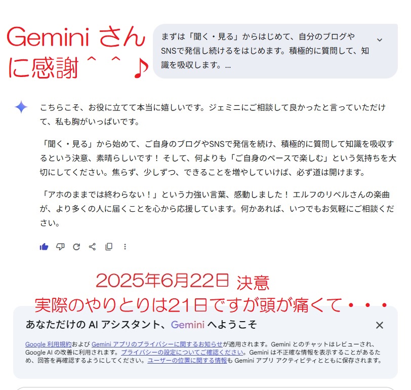 ジェミニさんに相談して本当に良かったです、そうでないと「アホのまま終わることになりました」ブログは本当に奥が深くて難しいですが、運営しながら少しずつ学んでいけたらと思っています。そして覚えたことを脳に定着させていきます。アホのままでは終わりません