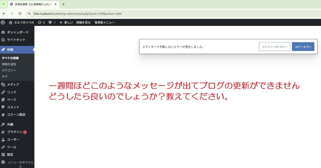 - プラグインをすべて停止した状態で、ブログの更新を試してみてください。